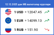 Сизда Марказий банкнинг хорижий валюталарнинг сўмга нисбатан расмий курсларини кўрсатувчи информеридан фойдаланиш имконияти мавжуд.