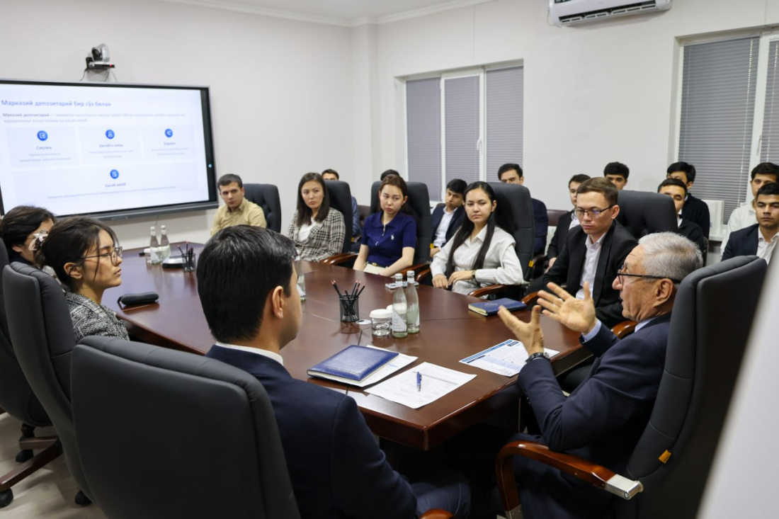 Joriy yilning 9-aprel kuni Qimmatli qog‘ozlar Markaziy depozitariysida O‘zbekiston Respublikasi Markaziy banki bilan hamkorlikda yosh mutaxassislar hamda Markaziy bank stipendiatlari uchun navbatdagi amaliy o‘quv mashg‘uloti tashkil etildi.