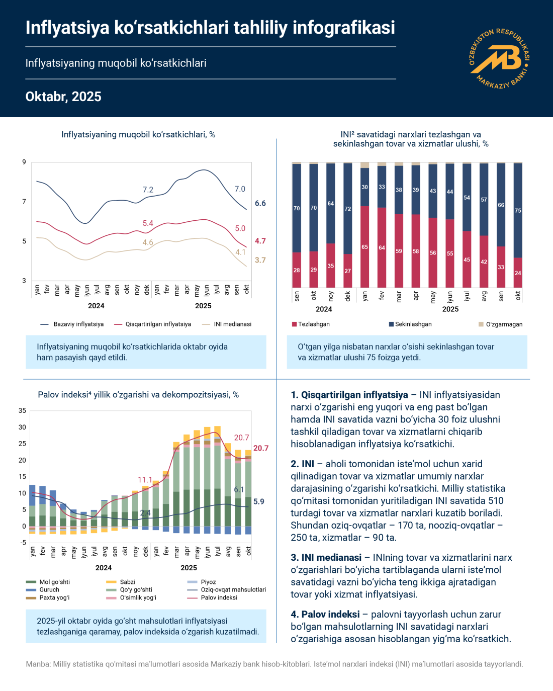 Oktyabr oyi uchun inflyatsiya ko‘rsatkichlari